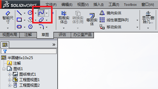 4、如下图所示,笔者来到了草图工具栏,毫不犹豫地点了“样条曲线”命令图标。(笔者钟爱样条曲线。)