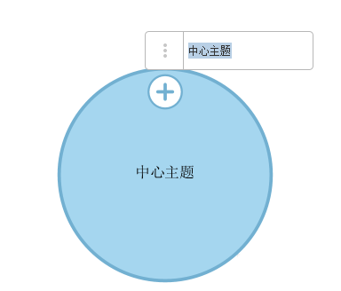 2、辐射导图默认状态如下图,我们可以输入中心思想的名称,然后点击+开始添加节点(双击可以焦近该节点)。