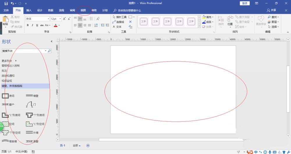 4、如图所示,唤出"Visio 2016"操作界面。点击功能区"视图"标签,下步将进行显示网格辅助图形设计的操作。