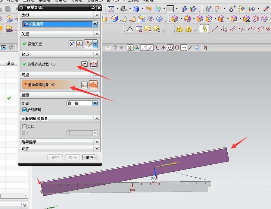 6、选择起点和终点,可以选面-点,线,面线-点,线,面 ,点-点,线,面