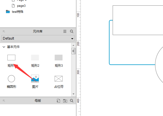 4、选中了矩形的选项之后,然后拖动到了交互设计空白处的位置。