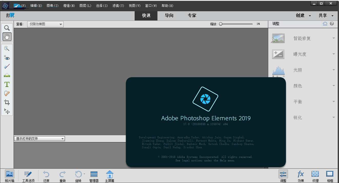 9、顺利进入Photoshop Elements 2019主界面,无注册提示,破解顺利完成,使用吧。