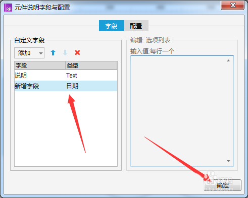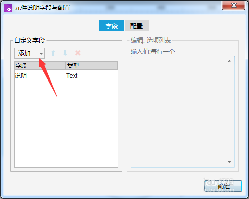 4、就会弹出了一个元件说明字段与配置 ,就会弹出点击添加按钮。