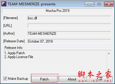 5、安装完成后,将破解文件夹下的patch破解补丁复制到软件安装目录下的bin文件夹中,默认为C:\Program Files\Imagineer Systems Ltd\Mocha Pro 2019\bin,管理员身份运行,点击patch按钮