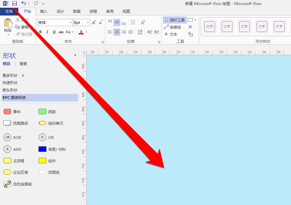 1、启动visio2013,将visio2013的界面,设置为天蓝色,作为文字的背景。