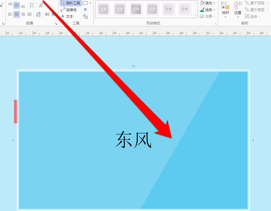8、最后在指针按钮旁边,点击转化为文本按钮。我们就可以看见,刚才的图形文字,变成了文本文字。