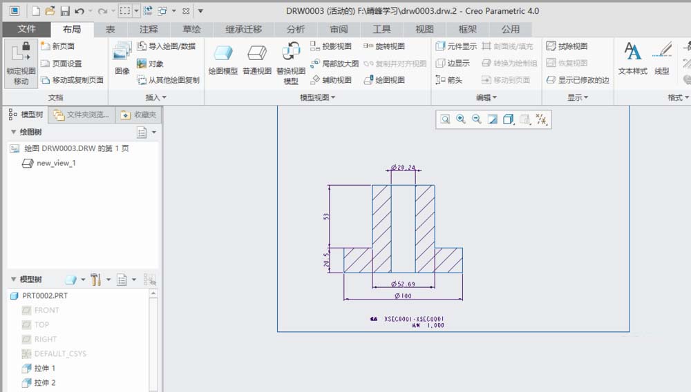 1、打开creo4.0软件,打开一个工程图文件。