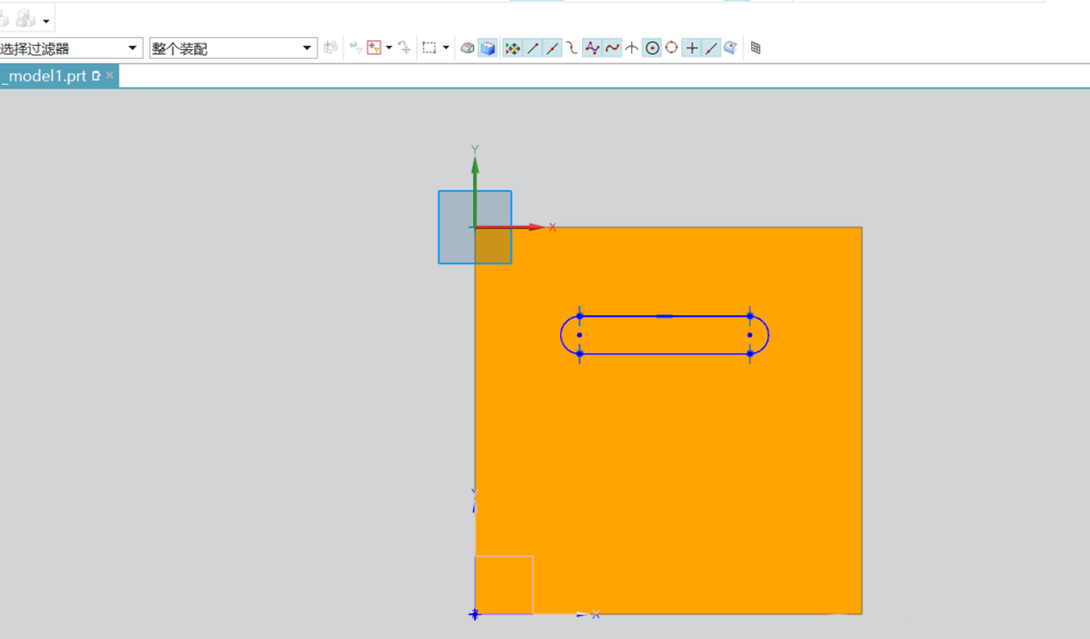 2、要想在方块上开孔会有好几种方法。一般的做法就是按尺寸在平面上用草绘画出腰形孔的轮廓,拉伸后求差得到。也可以调用重用库中的标准件到草绘中修改得到。还有一种方法可以更快得到腰形孔的。