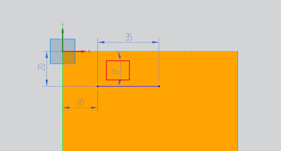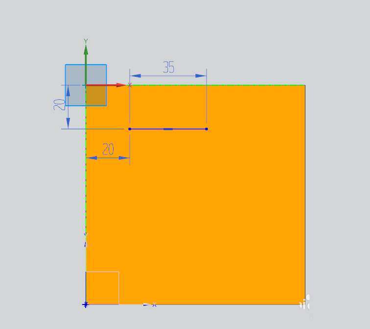 3、同样进入草绘,不过所绘的不是腰形孔,而是用一直线代替腰形孔的总长,定好位就可以了。水平约束取消,用角度来控制直线的方向也就控制了腰形孔的方向。