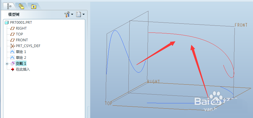 4、两条草绘曲线相交形成的空间曲线如下所示。