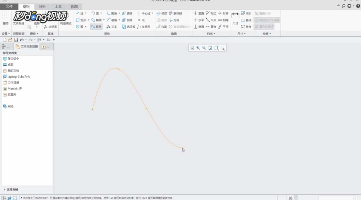 1、首先在工具栏中,鼠标左键点击“样条”曲线。