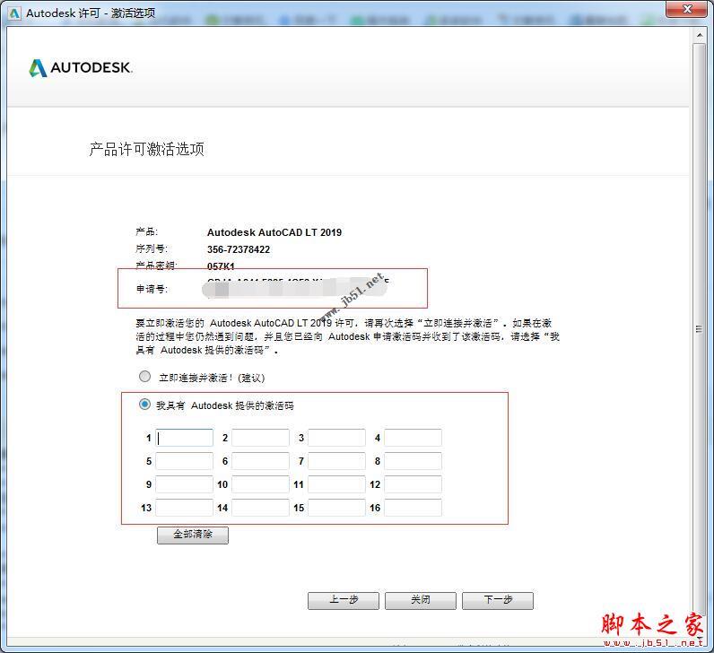 AutoCAD LT 2019 产品密钥: 057K1 序列号:356-72378422