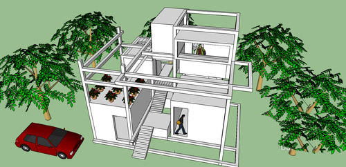 1、一般我们导二维图的顺序是先平面再立面后剖面,首先打开我们已经做好的SketchUp模型