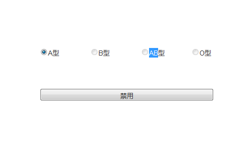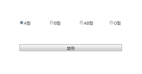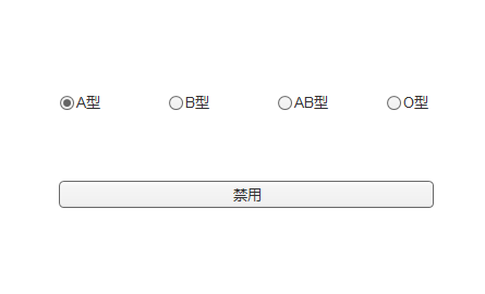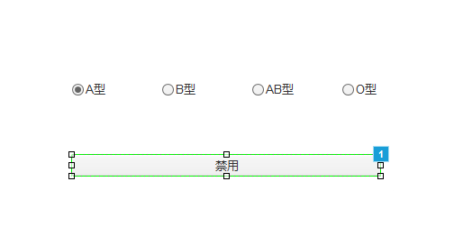 3、在四个单选按钮下方添加一个按钮,按钮显示的内容为“禁用”,宽度跟四个单选按钮总宽度一致,如下图所示: