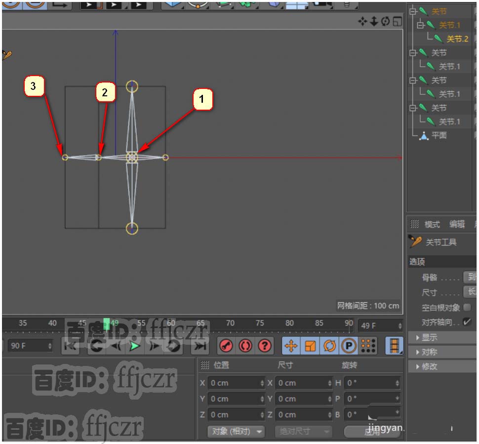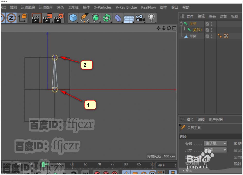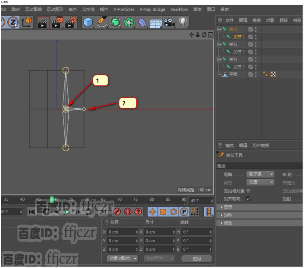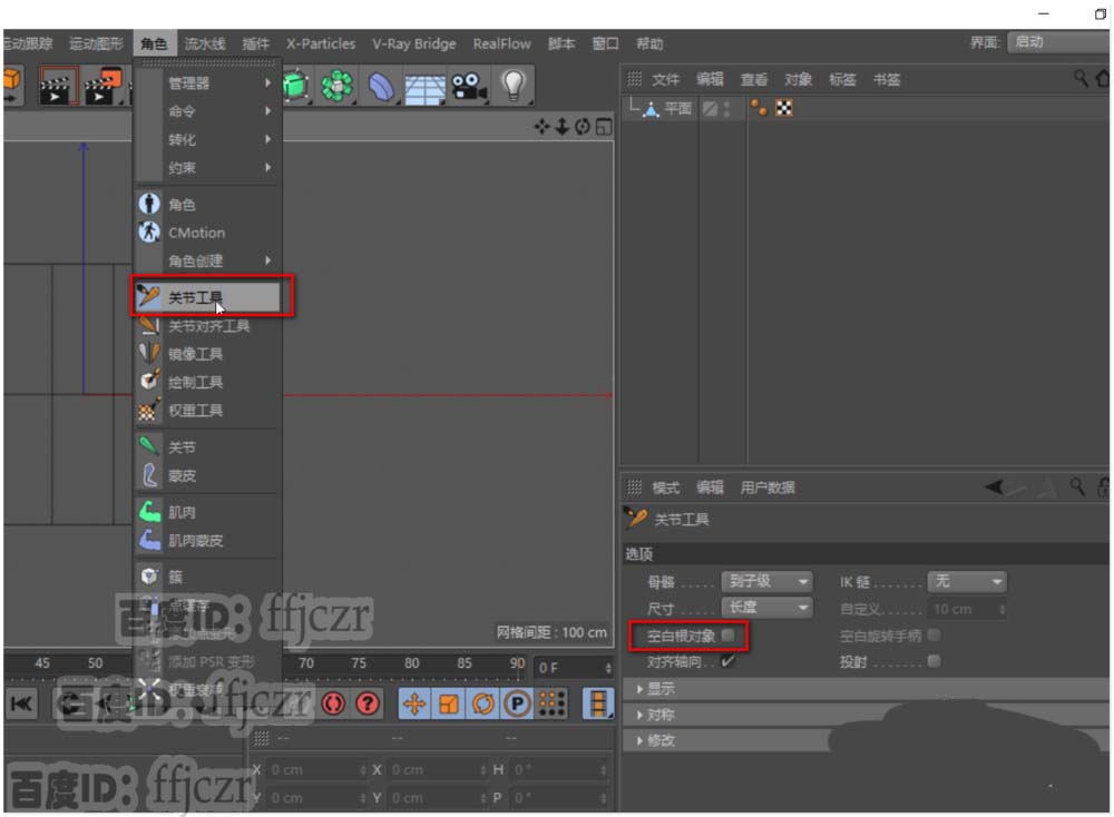 2、 鼠标打开角色菜单,选用关节工具;在关节工具参数栏中取消自动创建空白对象的选项。这样可方便后续的编组。