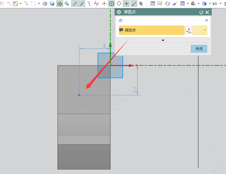 5、进入草图之后,可能图纸上的设计要求,决定沉头孔的点位置;