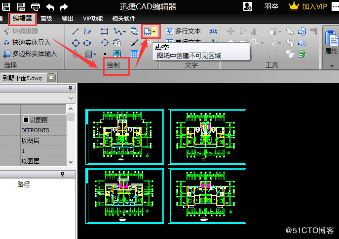步骤三:接下来,在编辑器选项的的工具栏中找到“绘制”选项框,在绘制中选择“虚空”选项按钮,就可以在图纸中创建不可见区域。