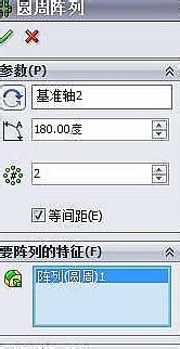 7、再选择第一根线作基准轴,进行圆周阵列,阵列的内容如下