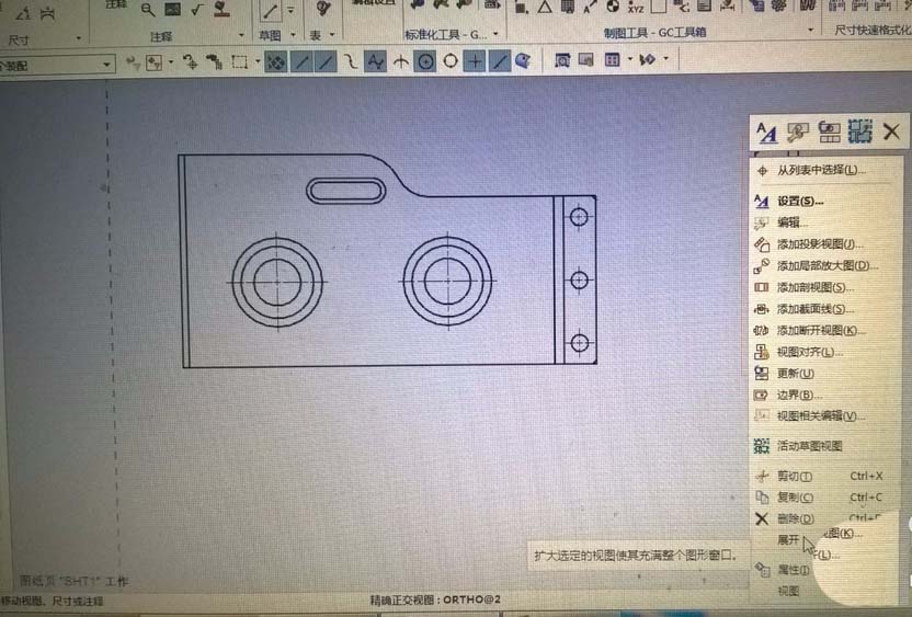 1、打开UG,进入制图模块,在左视图上点击右键,选择“展开”。