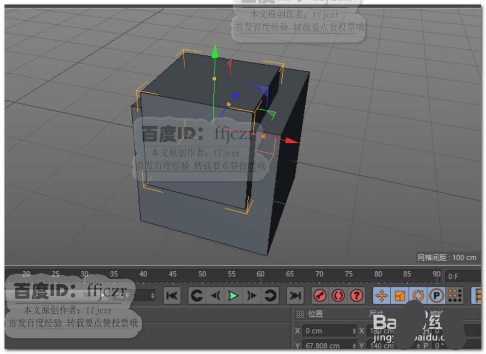 1、首先创建一个软件默认的立方体;再复制一个立方体,并将该立方体改名(小立方体),用缩放命令将小立方体缩小(尺寸随意),用移动命令将小立方体移动到大立方体要开孔的位置。如图所示。