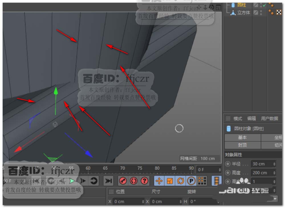 7、创建一个圆柱体,半径为30,高度为62,旋转分段要参考立方体模型倒角处的结构线来确定,这里确定数值为32.