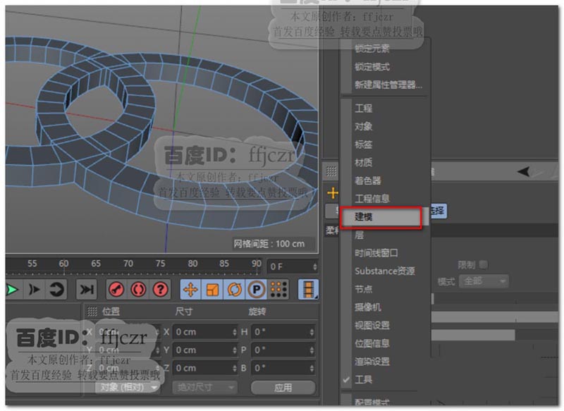 4、这时可以点开右侧模式菜单,选择其中的建模;在建模模式中勾选启用网格检测。