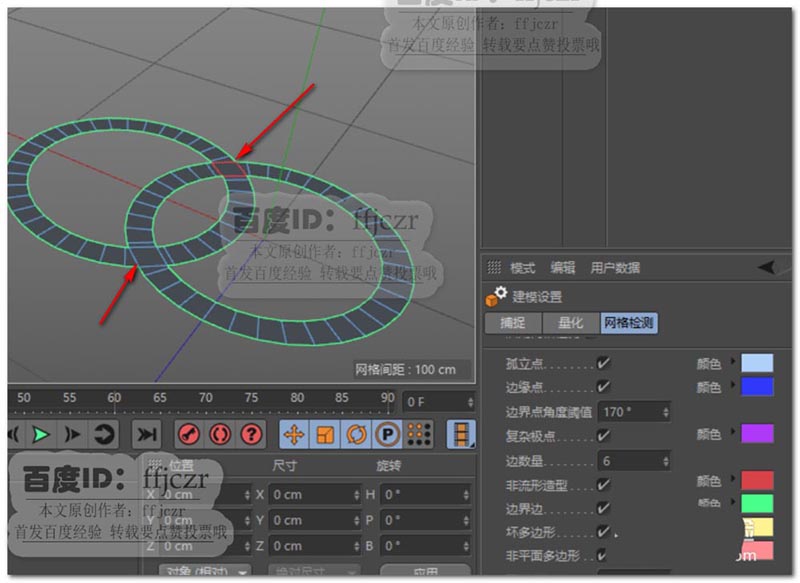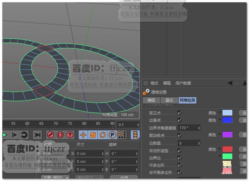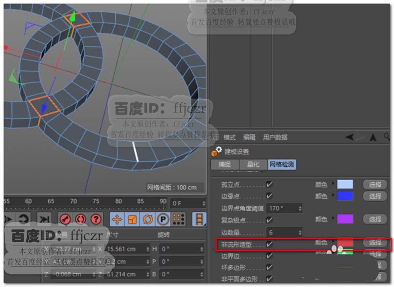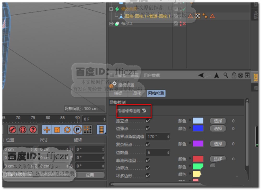 6、将被标的二个面删除,重新补上;这时建模模式中的网格检测不再标出有色结构。