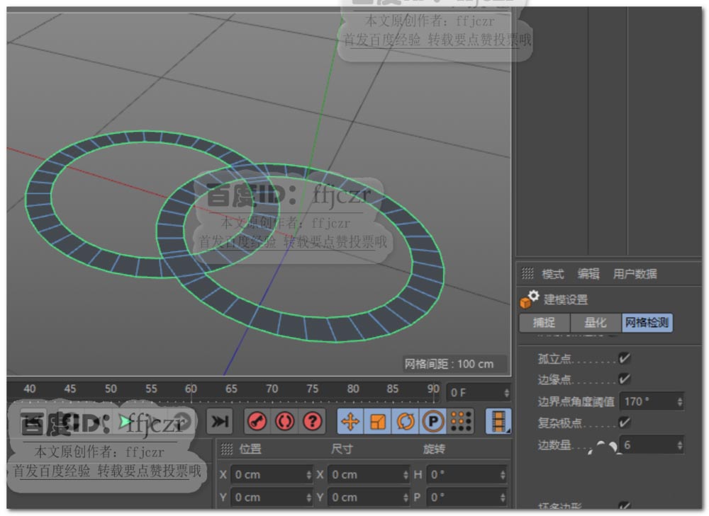 1、这里用二个相重叠的圆环来作说明倒角容易出现破面的情况;可以看到二圆环重叠处有很多凌乱的结构线;可用切刀工具对重叠的地方搭出结构线,如图2所示。