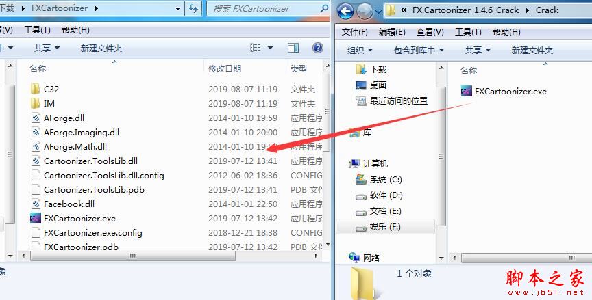 8.打开刚刚解压的软件包里面的破解文件夹,将破解文件FXCartoonizer.exe复制到安装目录