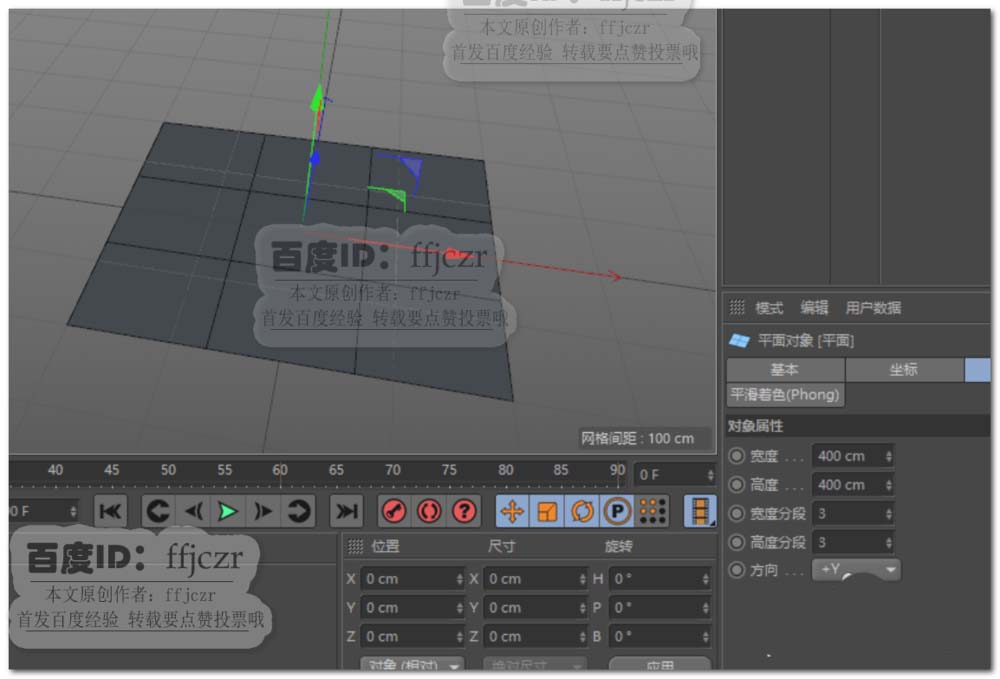 1、创建一个400*400的平面,分段为3*3,方向为+Y。