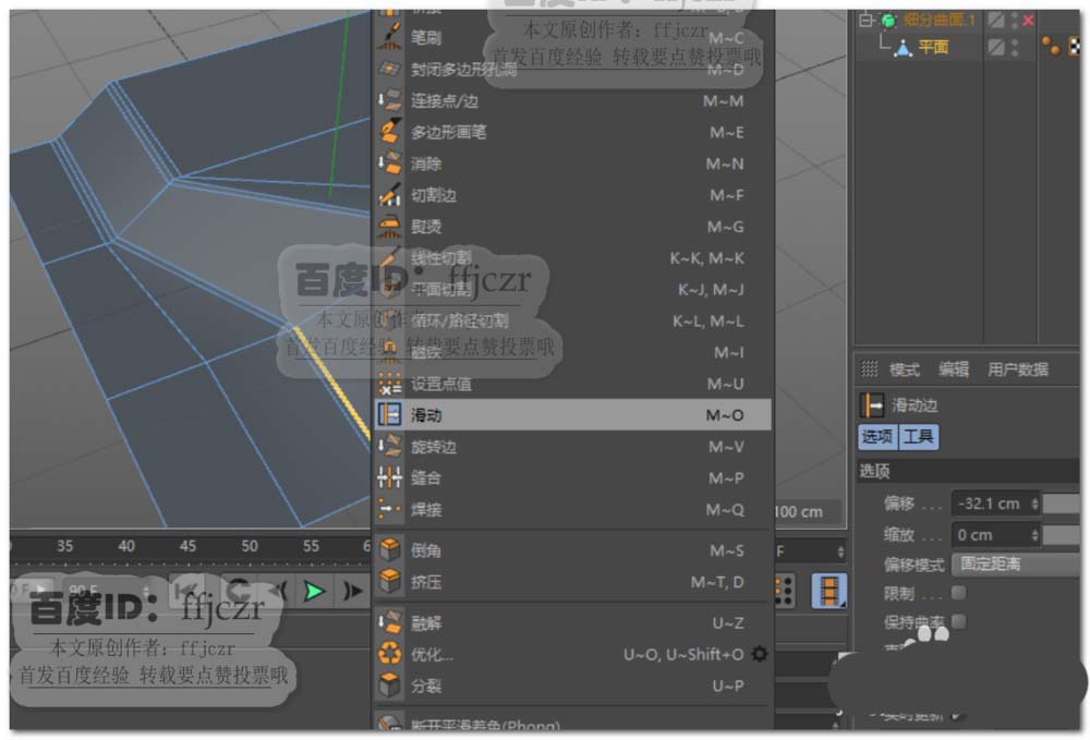 7、选用滑动命令,对图示的3、4线进行滑动。滑动的目的就是让选中的线远离倒角的中心线。图3就是最后所有线段移动后的效果。此时渲染即可得到硬边逐渐消失的造型。