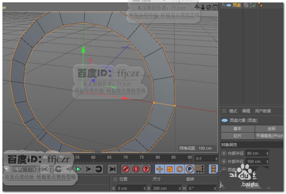 1、创建一个圆环,内部半径为80,外部半径为100,圆盘分段为1,旋转分段为20,方向为+Z。