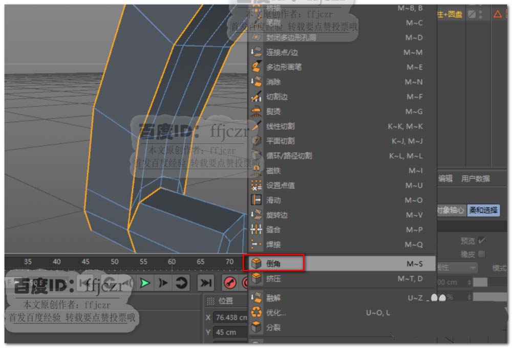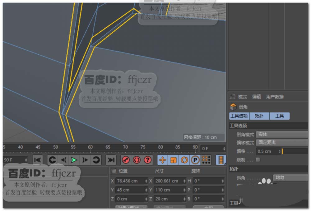 7、选择模型的所有轮廓边,进行倒实体角,偏移值为0.5,斜角为均匀。