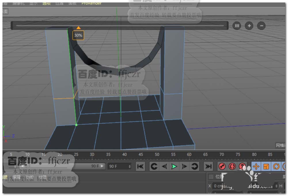 4、将圆柱体转为可编辑对象,删除圆柱体的两端面、上半圆;保留圆柱的下半圆,调整下半圆的高度与两立柱厚度相吻合。