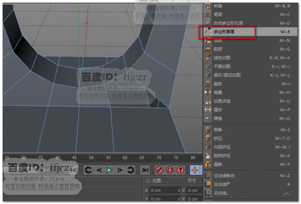 7、用多边形画笔工具,按住Ctrl选取相应的边进行缝合。如图所示。