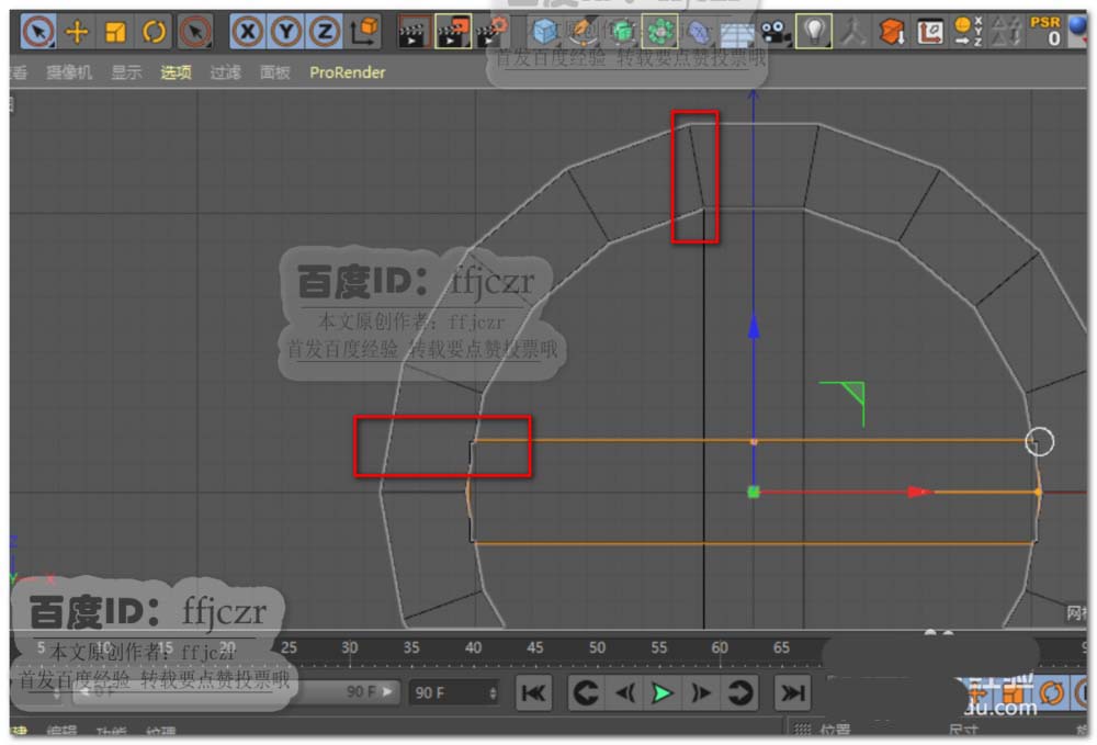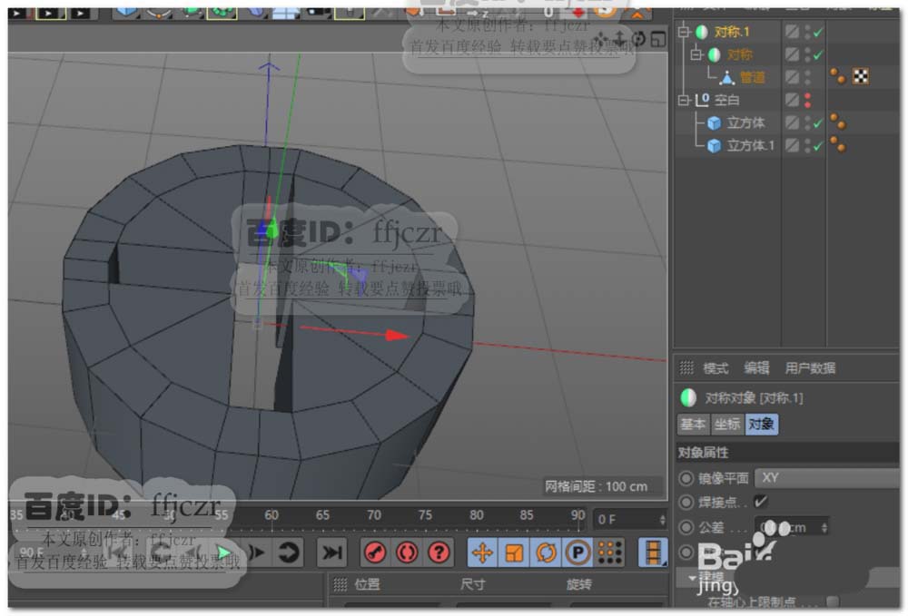 7、给圆管在Y轴上添加一条中线;将多余的圆管删除,只保留第二象限的结构。