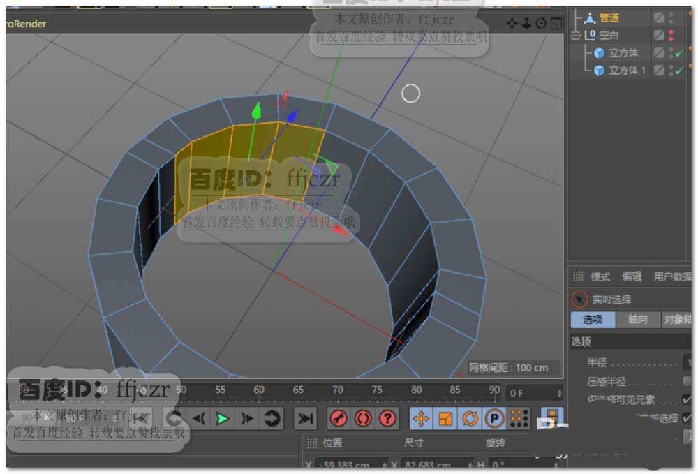 2、创建一个圆管,旋转分段为18;将其内径调整到与第一步创建的十字形最大外轮廓相一致。