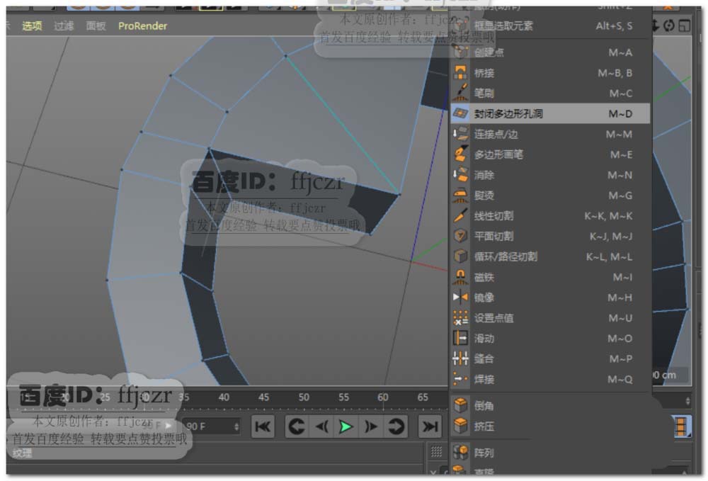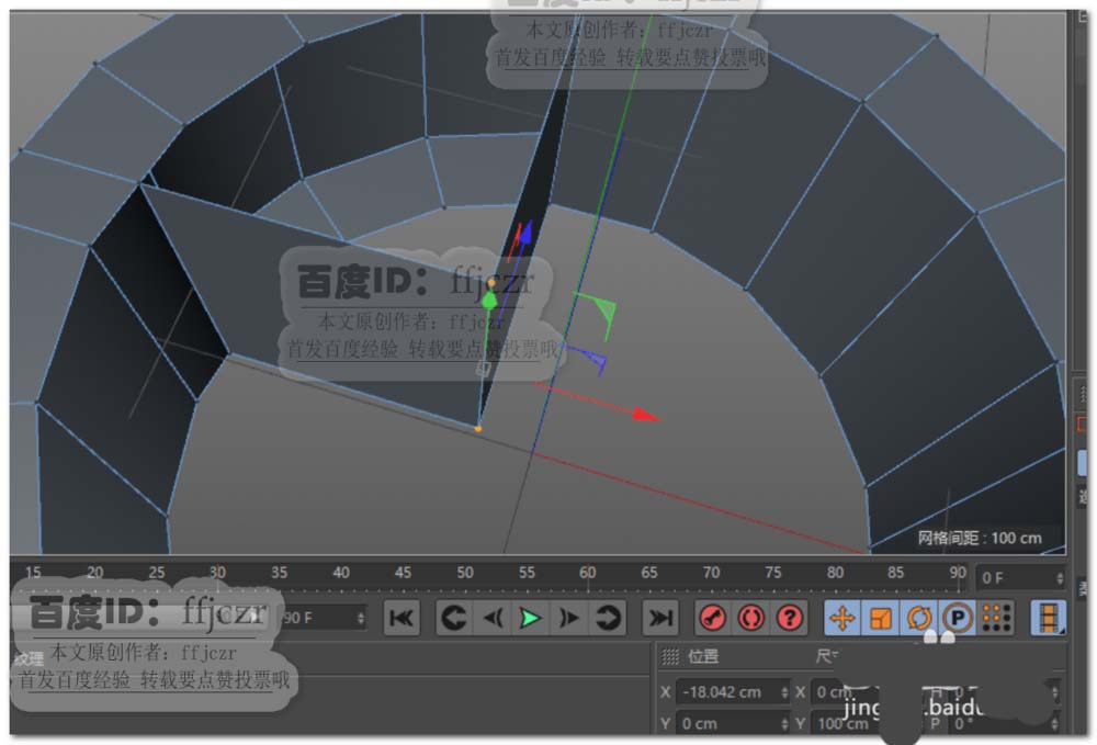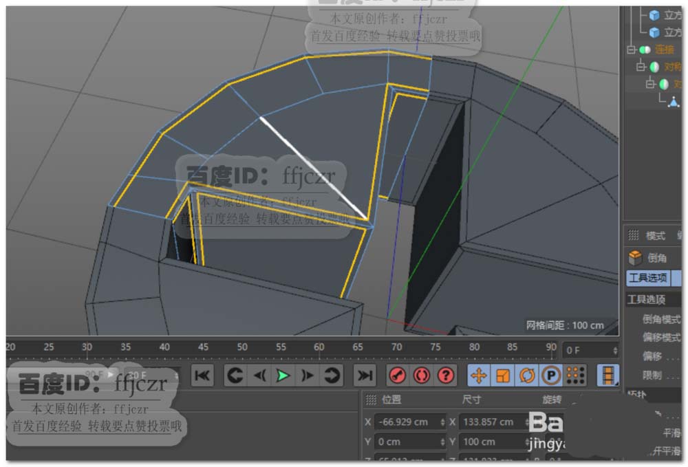 4、按图选中相应的面将其删除,分别选中参考十字形对应的边进行移动复制。