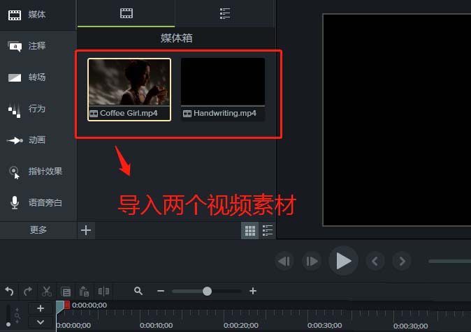 2、在打开窗口中选择文件路径,找到素材在电脑上的地址,导入到Camtasia 9中两个视频媒体素材。