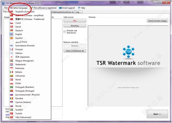 单击选择语言,然后单击您的首选语言。TSR Watermark软件现在将使用您的语言。