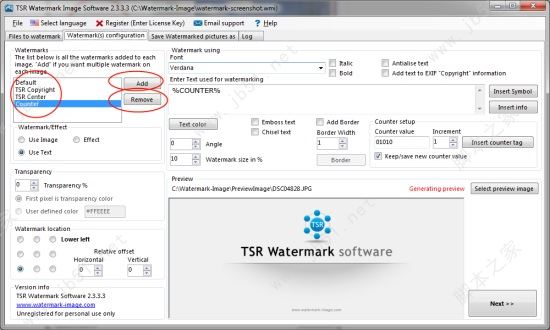 10. 计数器设置为您的图片添加一个数字 - 您可以选择保留/保存计数器值,或者在下次启动TSR水印软件时重新开始。
