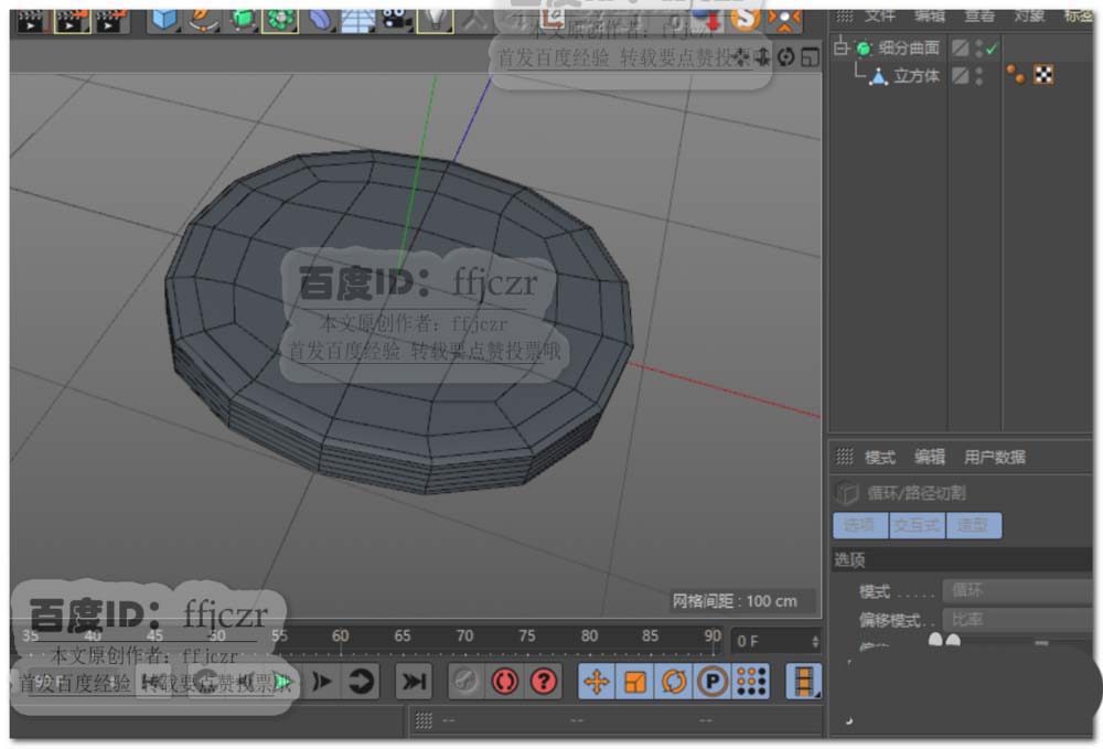 2、给多边形添加一个细分曲面,使模型成为一个圆形结构;将当前状态转为对象,隐藏原细分曲面组。