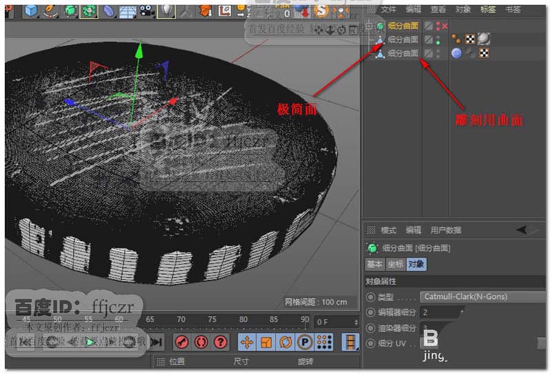 如图,模型为圆形案板,其表面上有很多不同的划痕。在模型只有较少面的情况下如何渲染出这种复杂的细节呢?我们需要使用c4d汇总的置换贴图来实现,下面我们就来看看详细的教程。