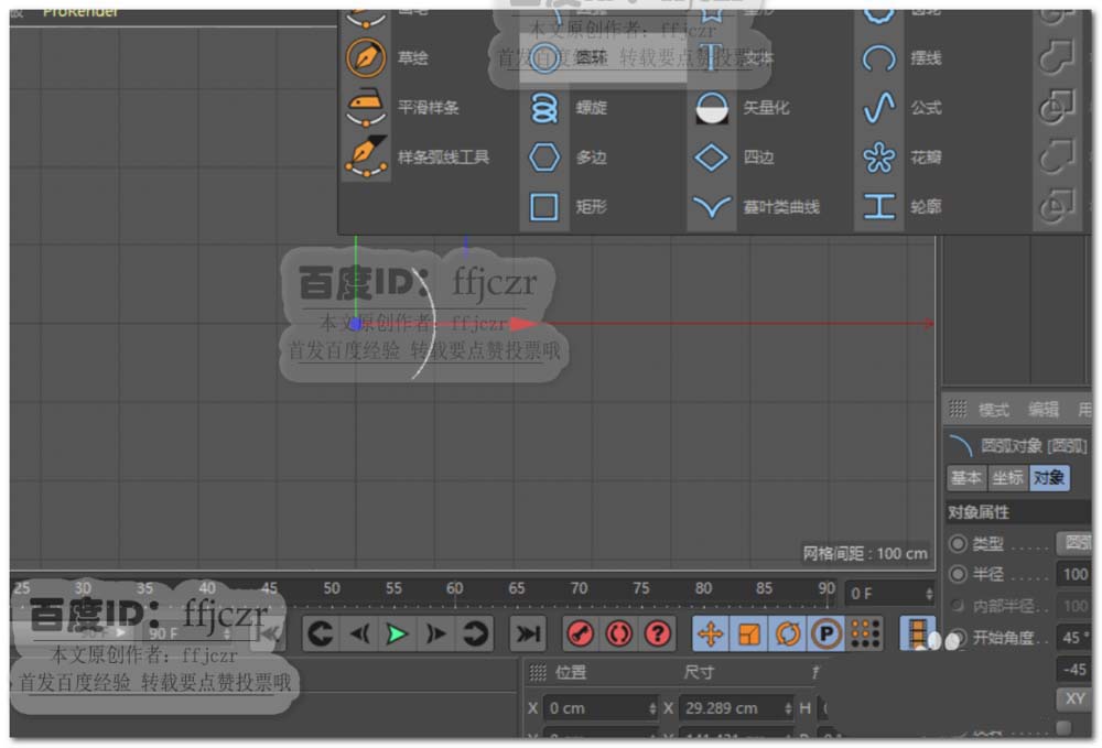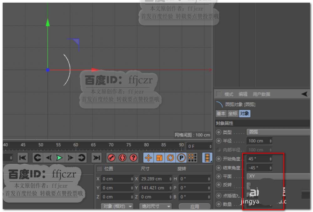 1、选用样条参数菜单栏中的圆弧,开始角度为45,结束角度为-45,平面为XY,点插值方式为统一。