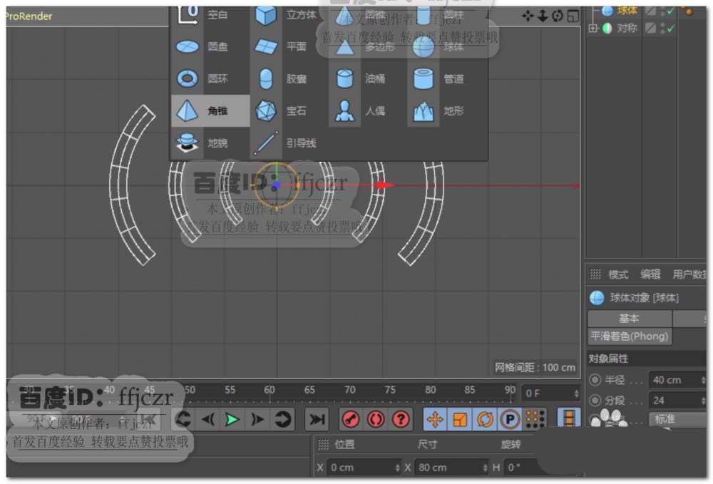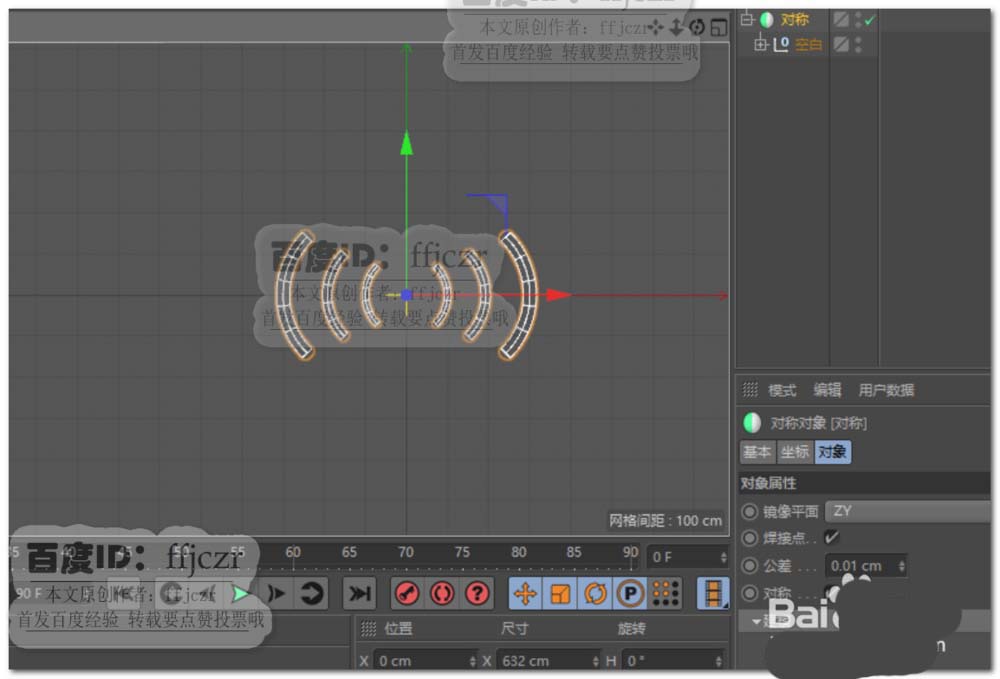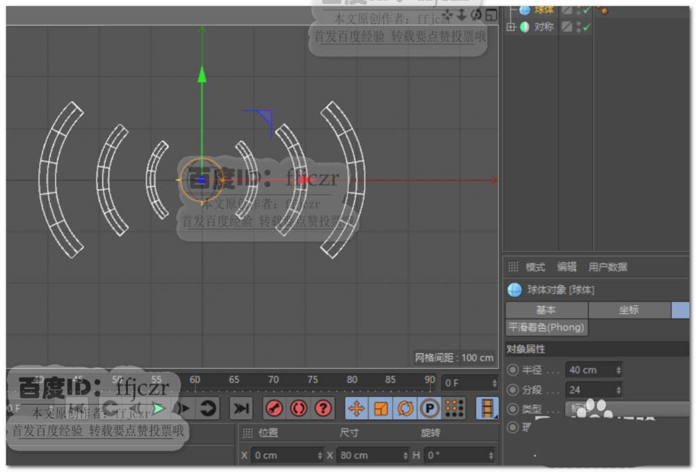 6、给克隆添加一对称,镜像平面为ZY。使坐标左右得到信号幅射的效果。在坐标中心添加一个圆球,直径为80。