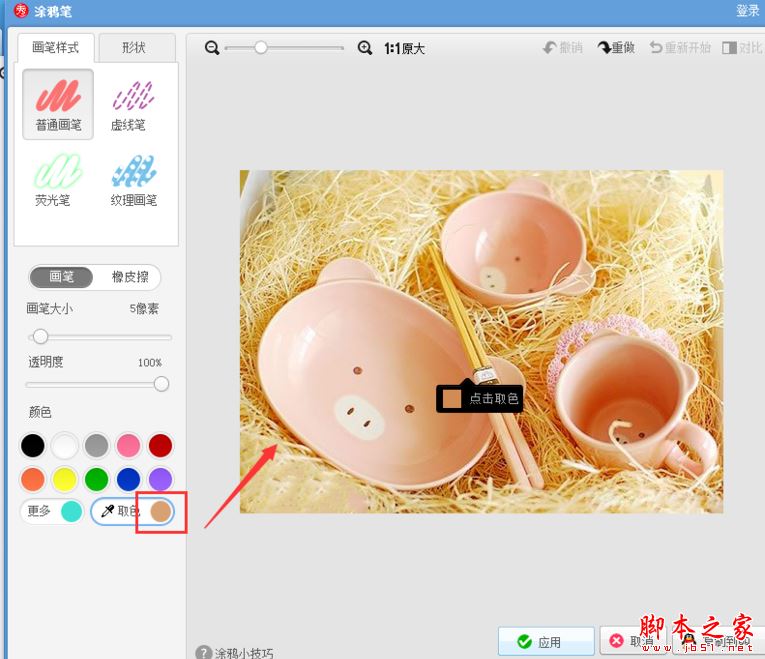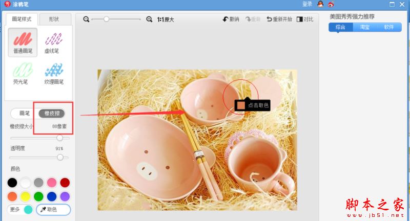 注意:美图秀秀的取色工具只能在当前画面中操作,不能将颜色取色用到另外的图片中。