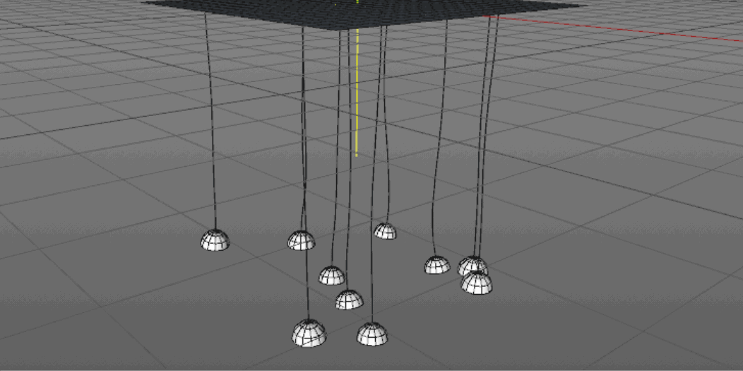 C4D中想要制作一个风铃被风吹动而摆动的动画,该怎么制作这个动画效果呢?如图所示,半球状的风铃牵引在细线上,在风力的作用下摆动,详细制作过程请看下文详细介绍。