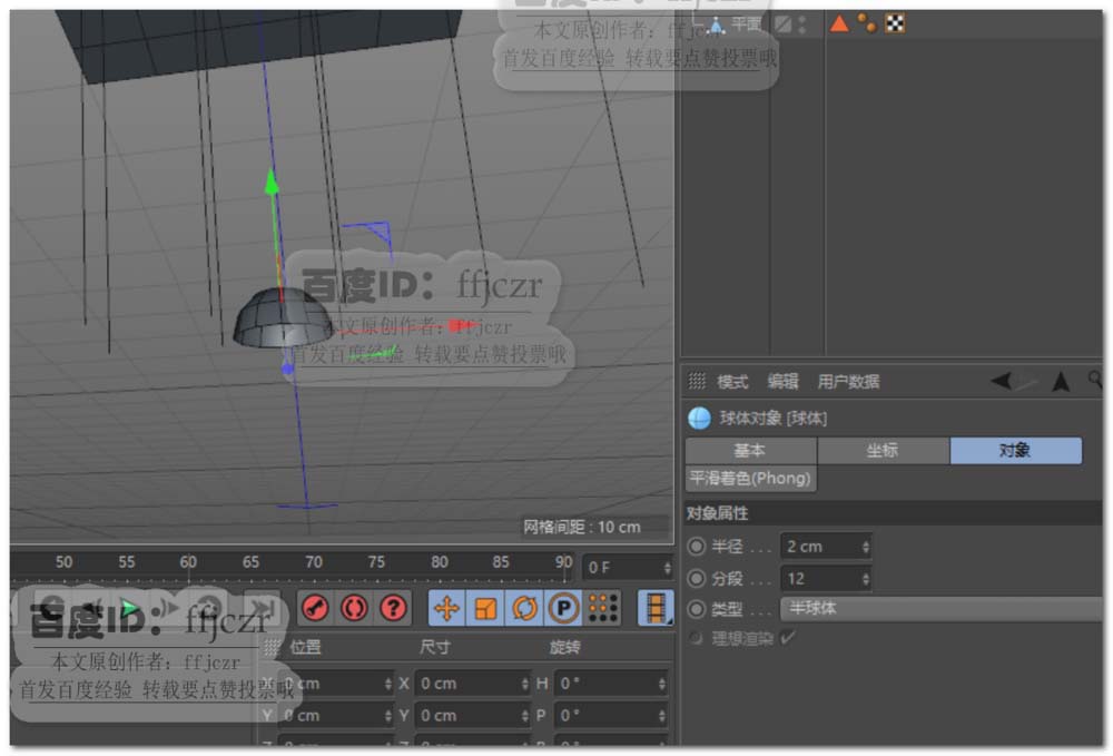 4、创建一个半圆球,半径为2,分段为12.如图所示。