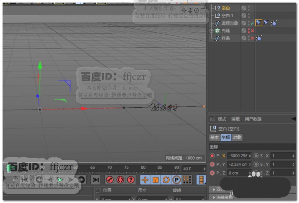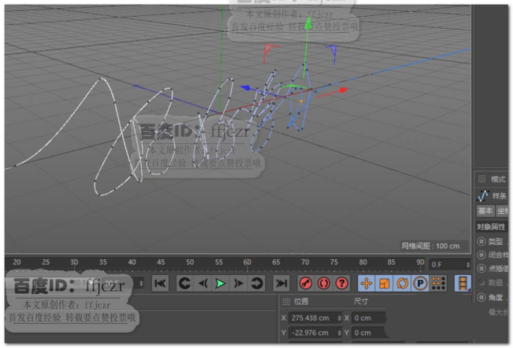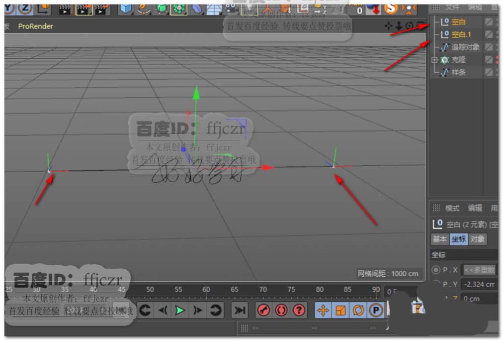 5、新建二个空白对象,分别将二空白对象调整到样条线的两端点处。