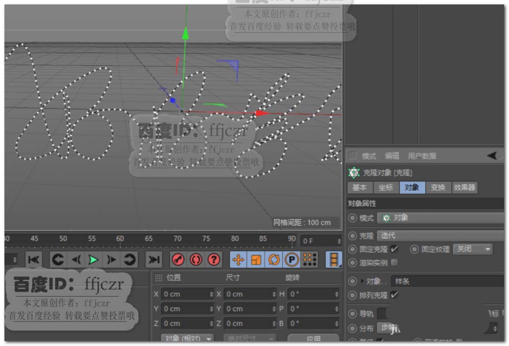 7、样条线文字两端因与空白对象约束,两空白对象生成的位移令文字被扯成一条直线。文字扯成直线的动效创建完成。